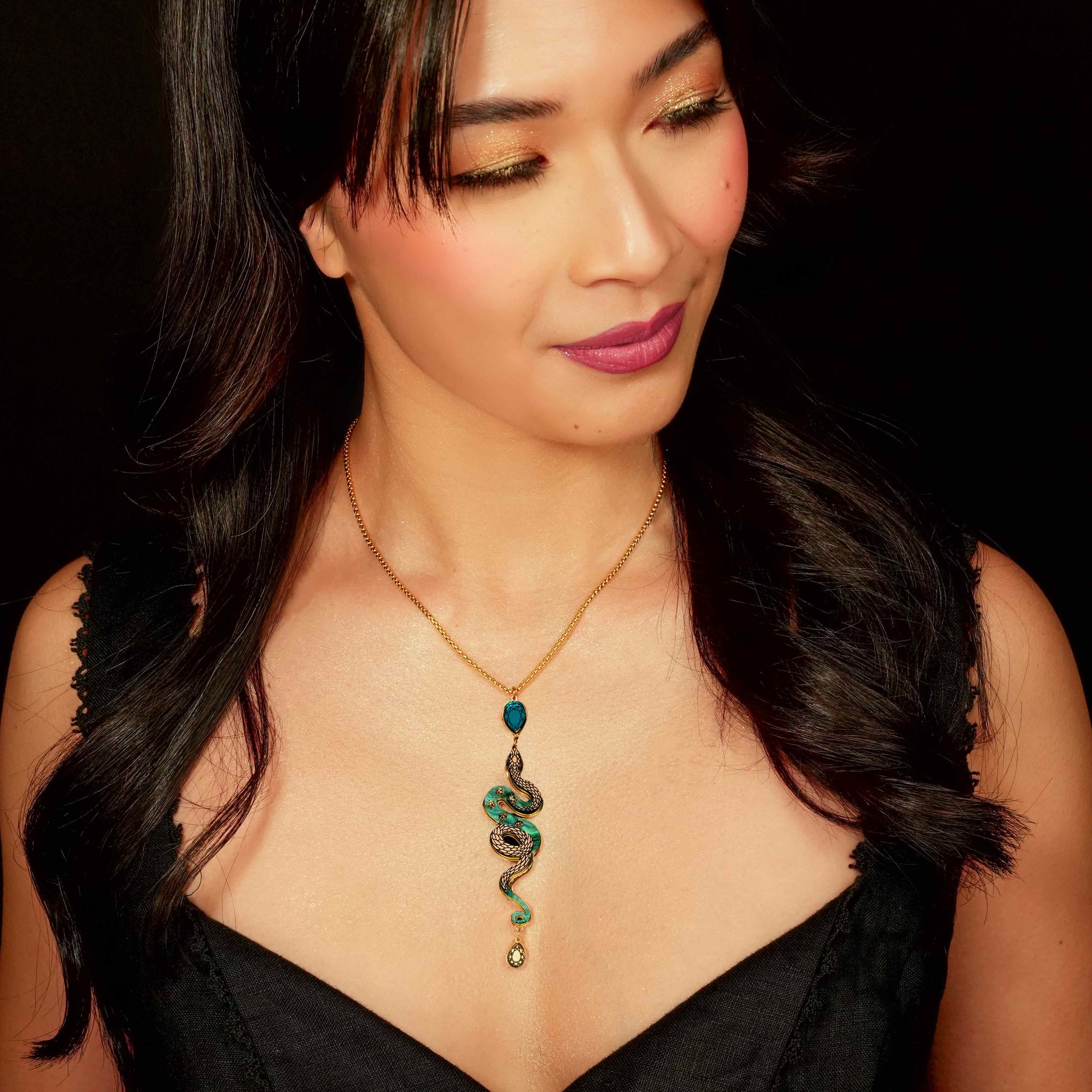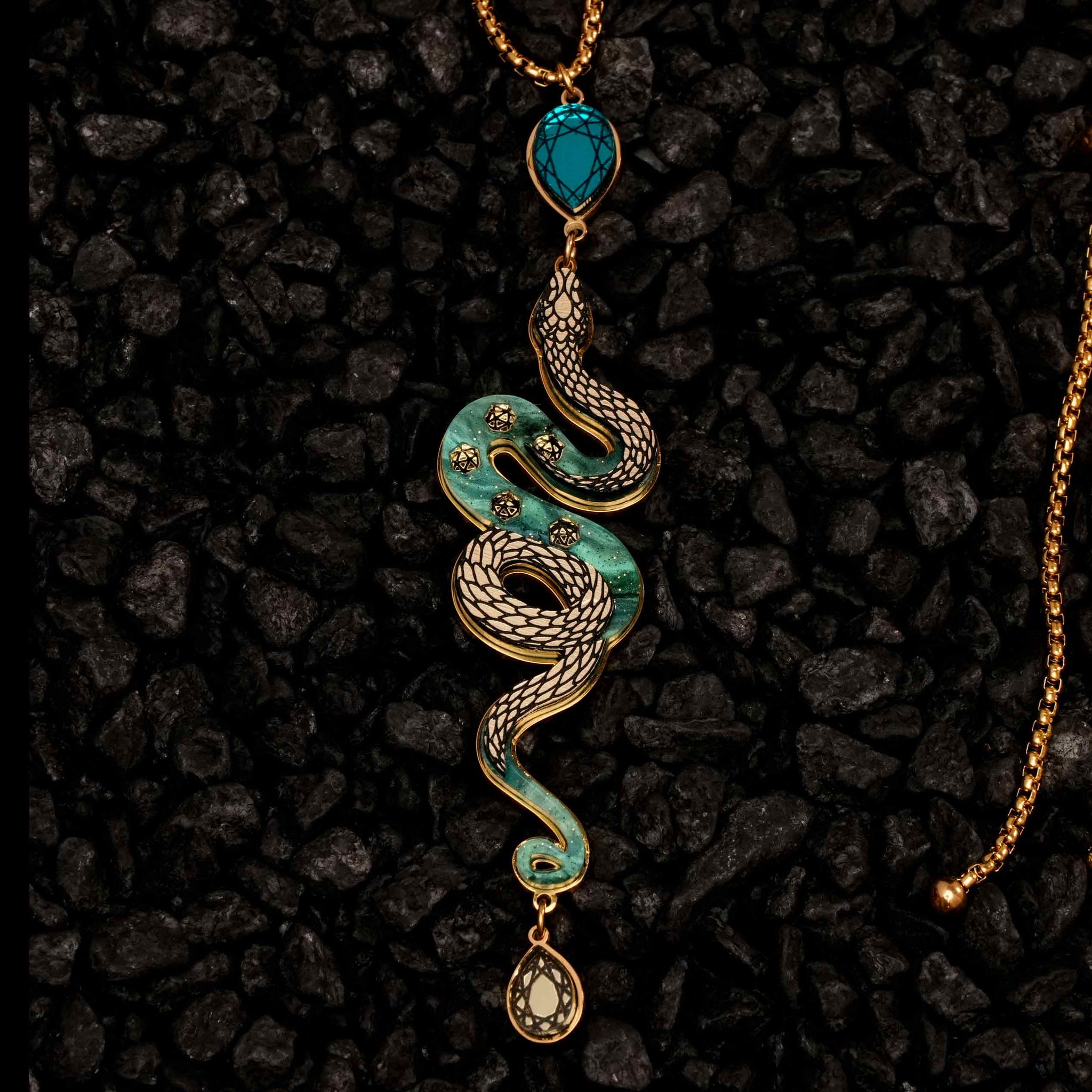 MEDUSA Gold Snake Necklace | Teal Marble