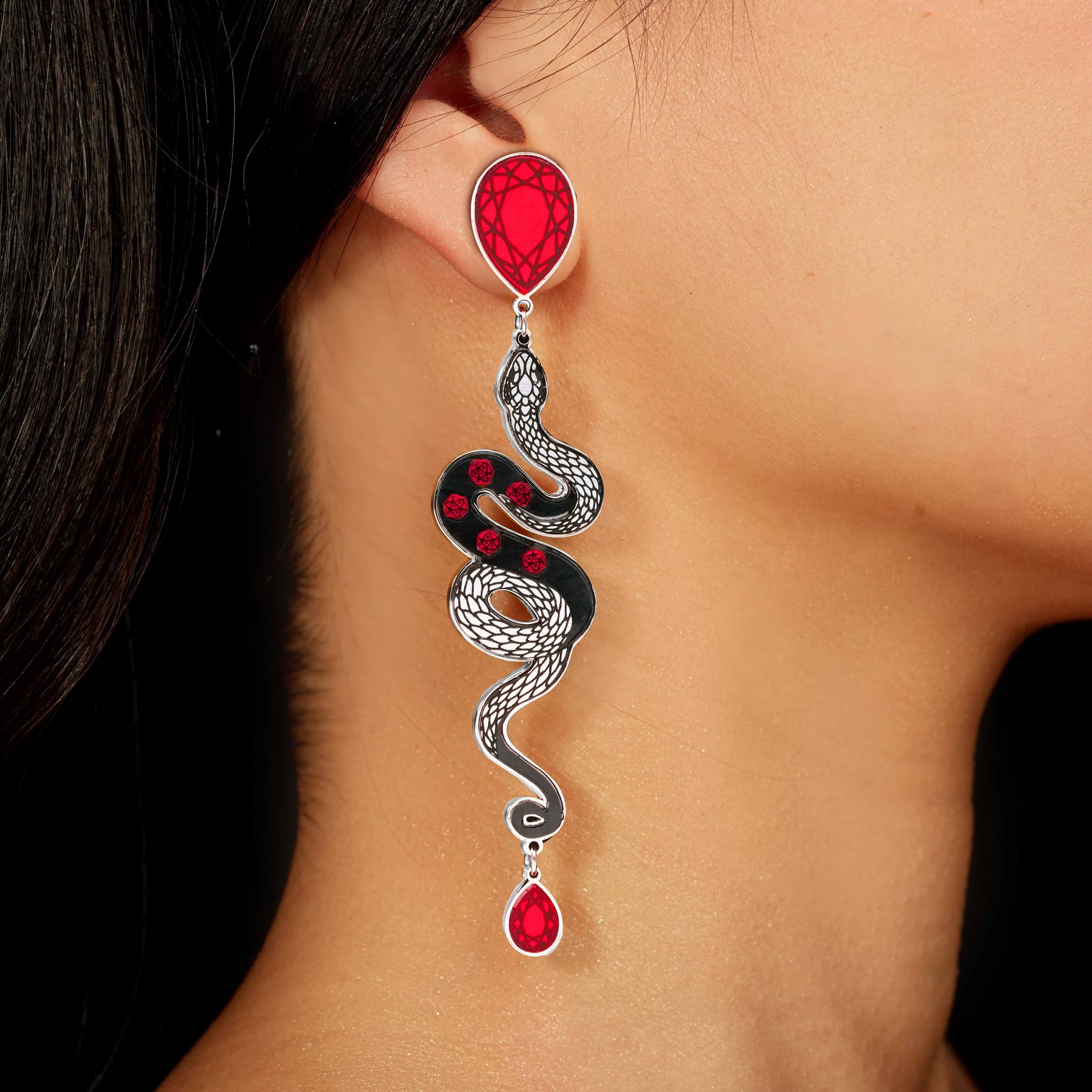 Pendant: 1.5 cm × 6 cm snake dangles tipped with ruby gem drops