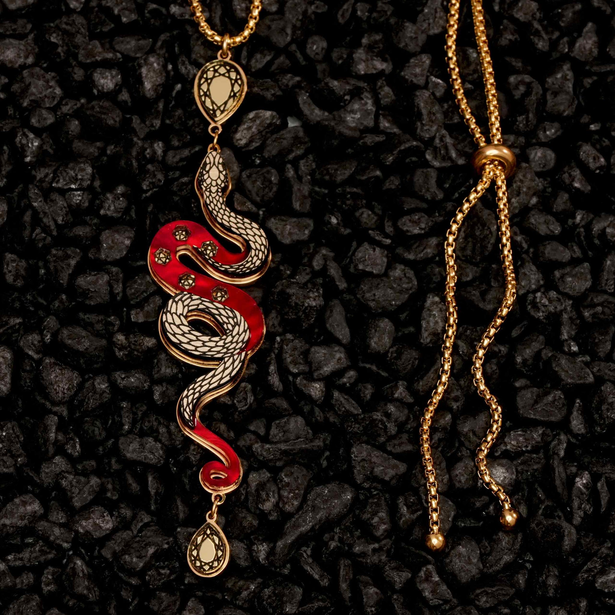 The Medusa Snake Necklace in Ruby Marble + Gold is a symbol of unapologetic confidence — bold, fiery, and magnetic.